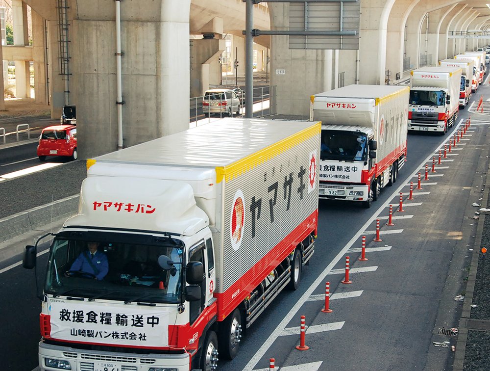 山崎製パンの公式サイトによると「大規模災害の発生に際して、被災地への緊急食糧の供給を行うことは、食品企業としての当社の社会的使命と考えています」とし、過去には東日本大震災発生翌日に政府の要請を受け、緊急食糧対策本部を設置。自社の配送トラックにパンを積み込み、避難所、行政機関へ供給した。