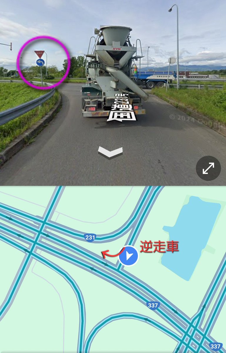 国道337号石狩新港南、まさかの逆走車💦 pic.twitter.com/fGplBz2tgS