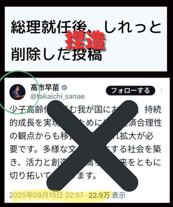 🚨拡散希望!🚨サナ総理のこのポスト捏造!注意喚起、私ぶち切れ💢