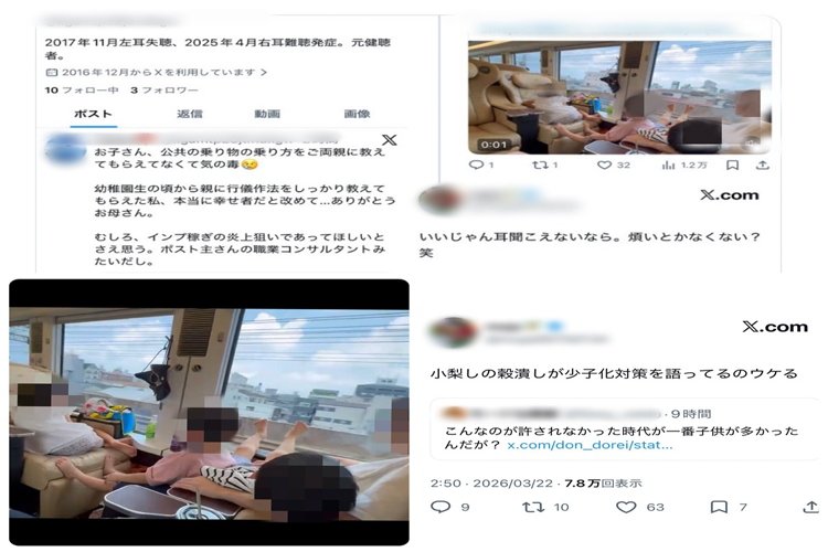 しかし、子供たちが靴を脱いで素足で窓ガラスや座席に足を乗せている姿が目立ち、すぐに「有料の特別席でこれはありえない」「隣席の乗客は迷惑極まりない」「公共交通機関のマナーを全く理解していない」との指摘が相次いだ。投稿は瞬く間に拡散され、数百万ビューを記録する事態となった。批判の多くは「子供だから仕方ない」という擁護ではなく、親が注意を促さない点に集中した。