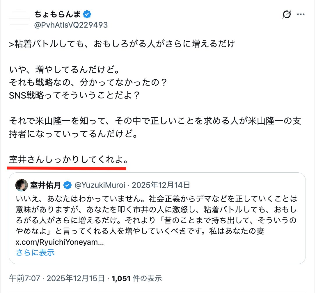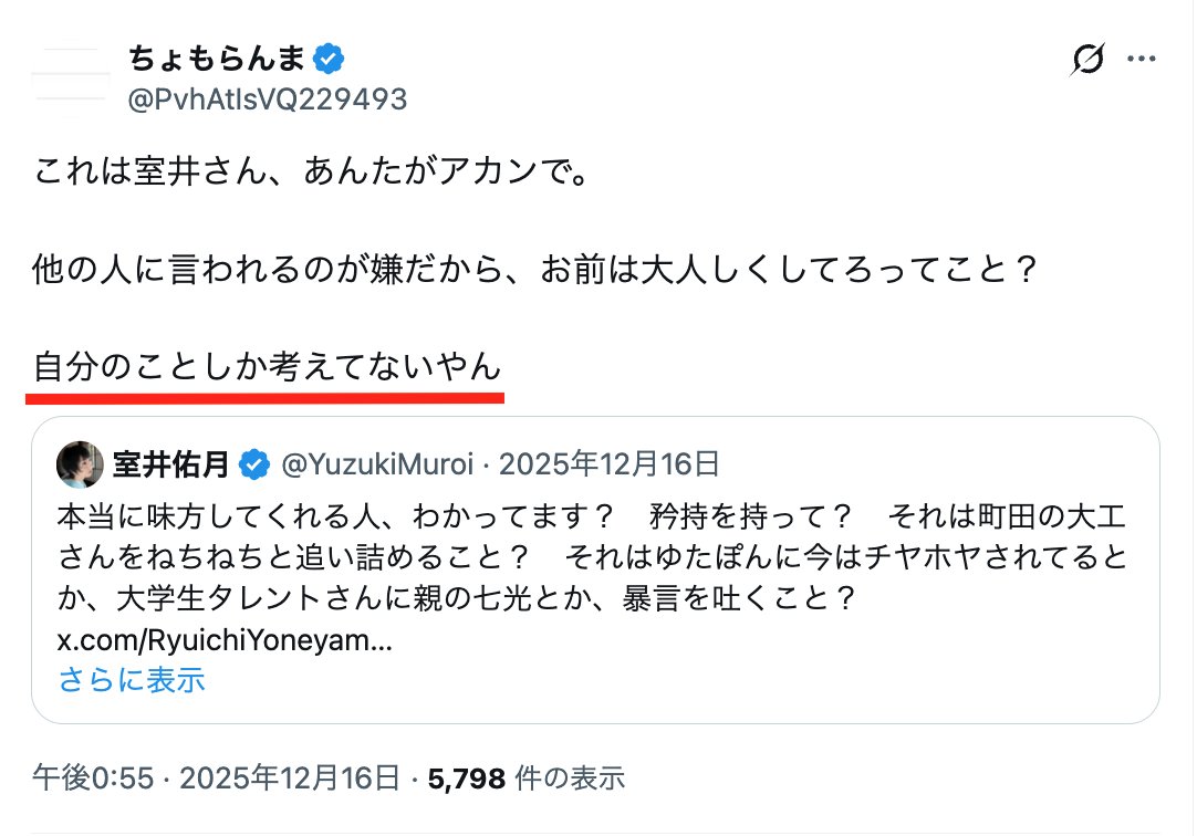 “ちょもらんま”さんが室井さんを批判しています!