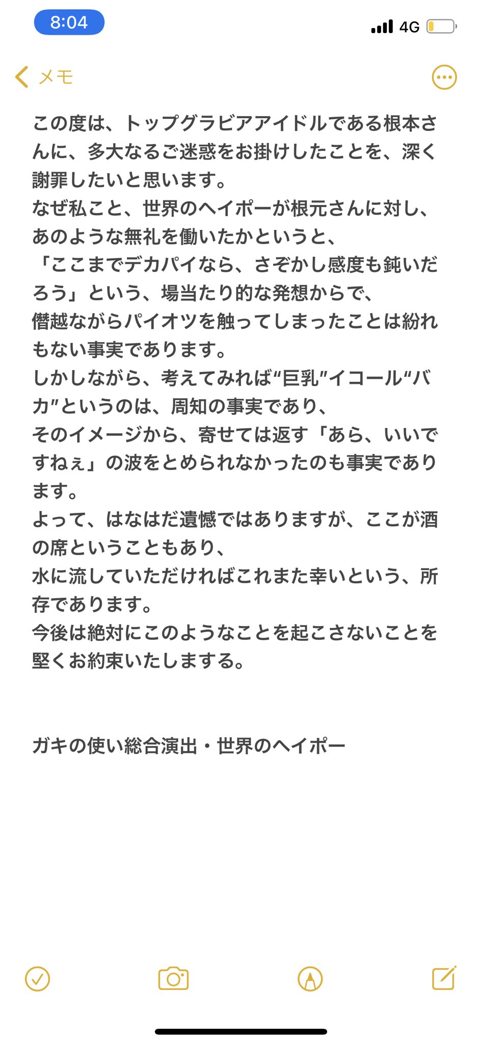 人身事故とかの場合は文章を考えて本人に渡して直筆の手書きにして出させるん。書かしたけど字がド下手で、字の綺麗な他の奴に清書させるとか、様々な工程を経て謝罪文は出荷されてるんね。